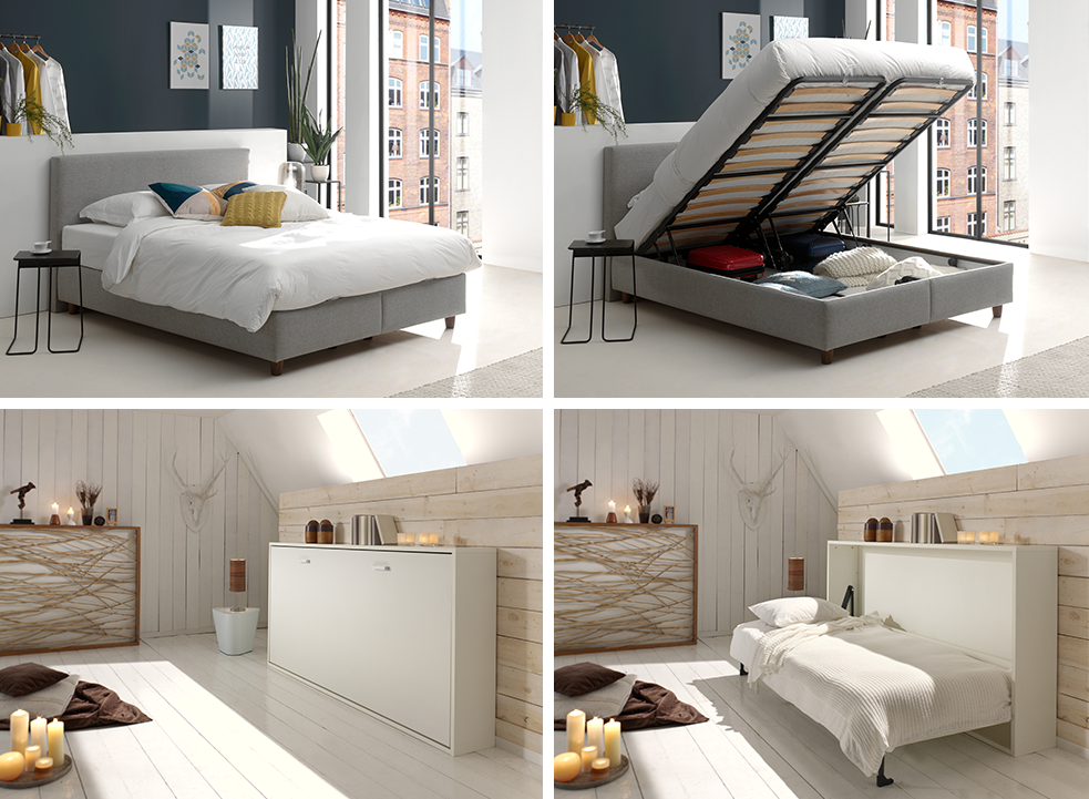 Maak overal gebruik van kasten en wees ook creatief. Multifunctionele meubels zijn in kleine ruimtes een ideale oplossing. Denk maar aan zetels of bedden met ingebouwde opbergruimte en kasten waar een bed uit kan getoverd worden. Ideaal voor een studio of een kleine kinderkamer waar je een extra bed wil voorzien voor een vriendje of vriendinnetje die blijft slapen. Het bed even niet nodig? Klap het op en opgeruimd staat netjes!