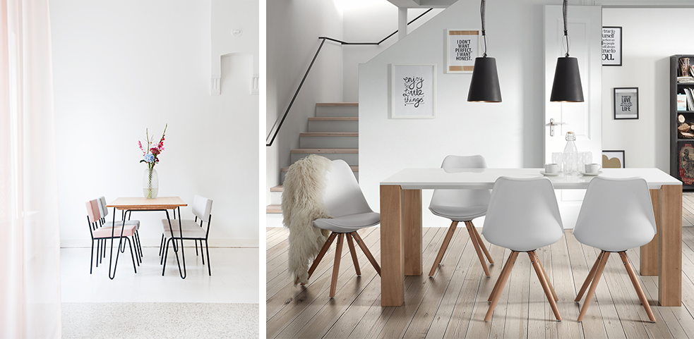 Bank links: Fést - Monday / Vaas tafel links: Fést - Facet / Stoelen rechts: Kave Home - Ralf