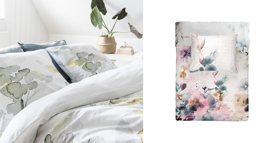 Ook abstracte prints passen perfect in de slaapkamer. Deze dekbedovertrekken van Walra lijken wel met waterverf beschilderd en hebben zo een erg rustgevende look. Ook de zachte kleuren zijn ideaal voor in de slaapkamer.