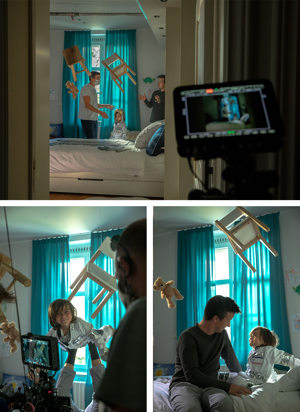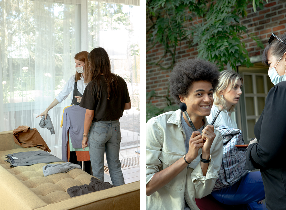 Daar stond het team klaar met acteurs, stylisten en film crew.