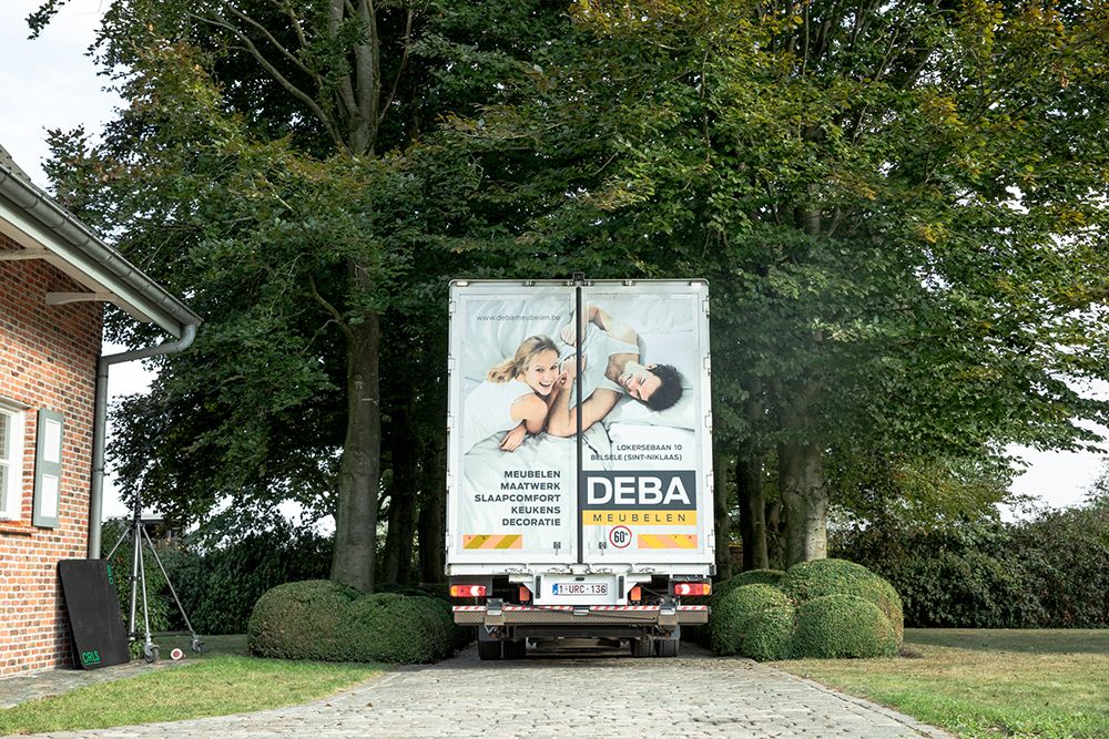 We vertrokken met een DEBA camion, volgeladen met zorgvuldig uitgekozen interieur spullen uit onze winkel, op weg naar de shooting locatie.