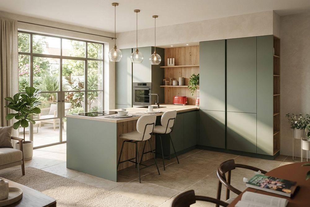 Wie inspiratie zoekt, merkt dat bepaalde keuzes vaker terugkomen. Zachte kleuren zoals groen- en beigetinten brengen rust, terwijl hout zorgt voor warmte in de ruimte. Greeploze kasten geven een strak geheel en open rekken maken een keuken persoonlijker.