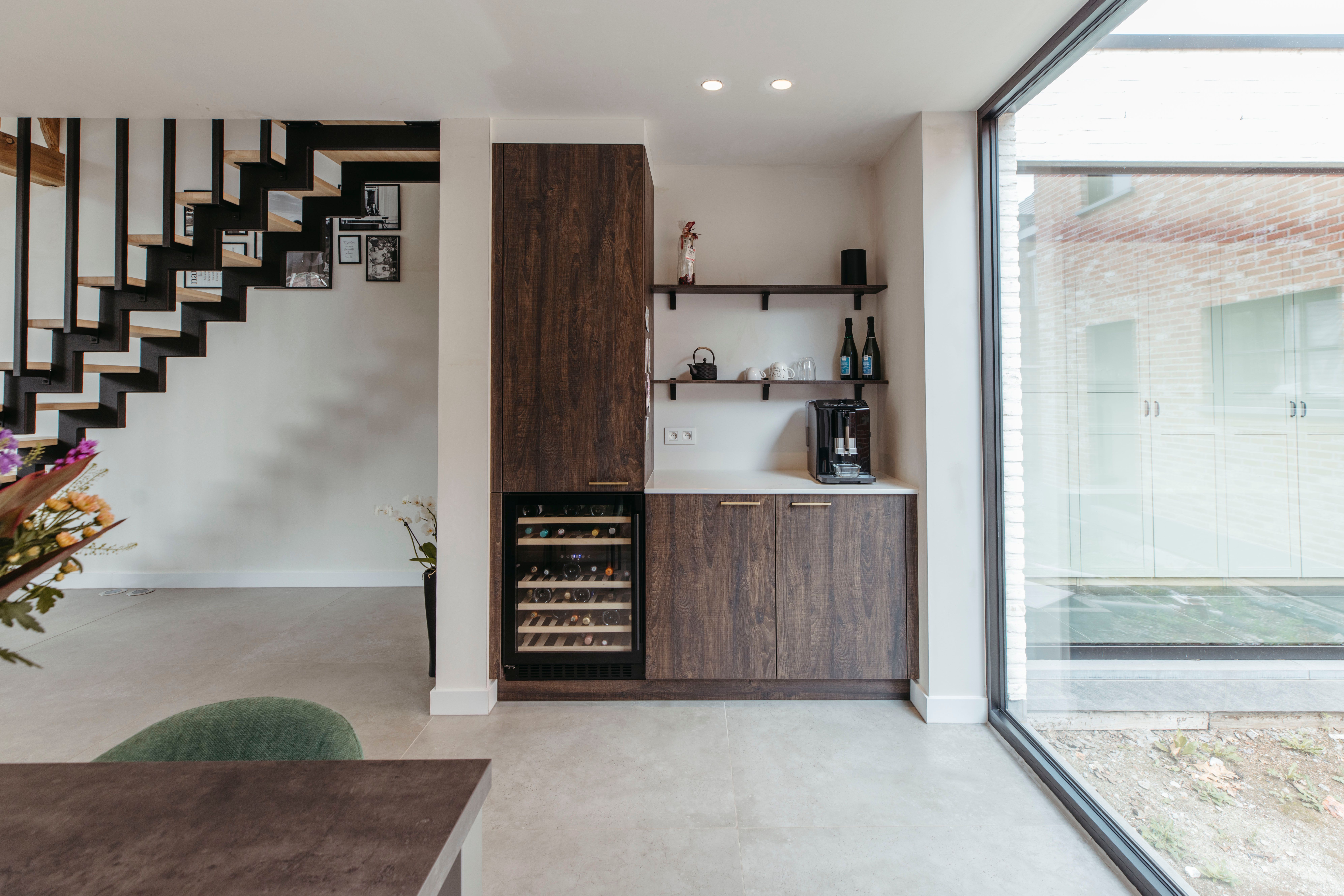 Bijzonder zijn de aparte koffiehoek, waar je in alle rust een perfecte espresso kunt maken, en de wijnkoeler, die uitnodigt tot gezellige momenten met vrienden of familie. Hier wordt koken niet alleen een dagelijkse taak, maar een belevenis om samen van te genieten.