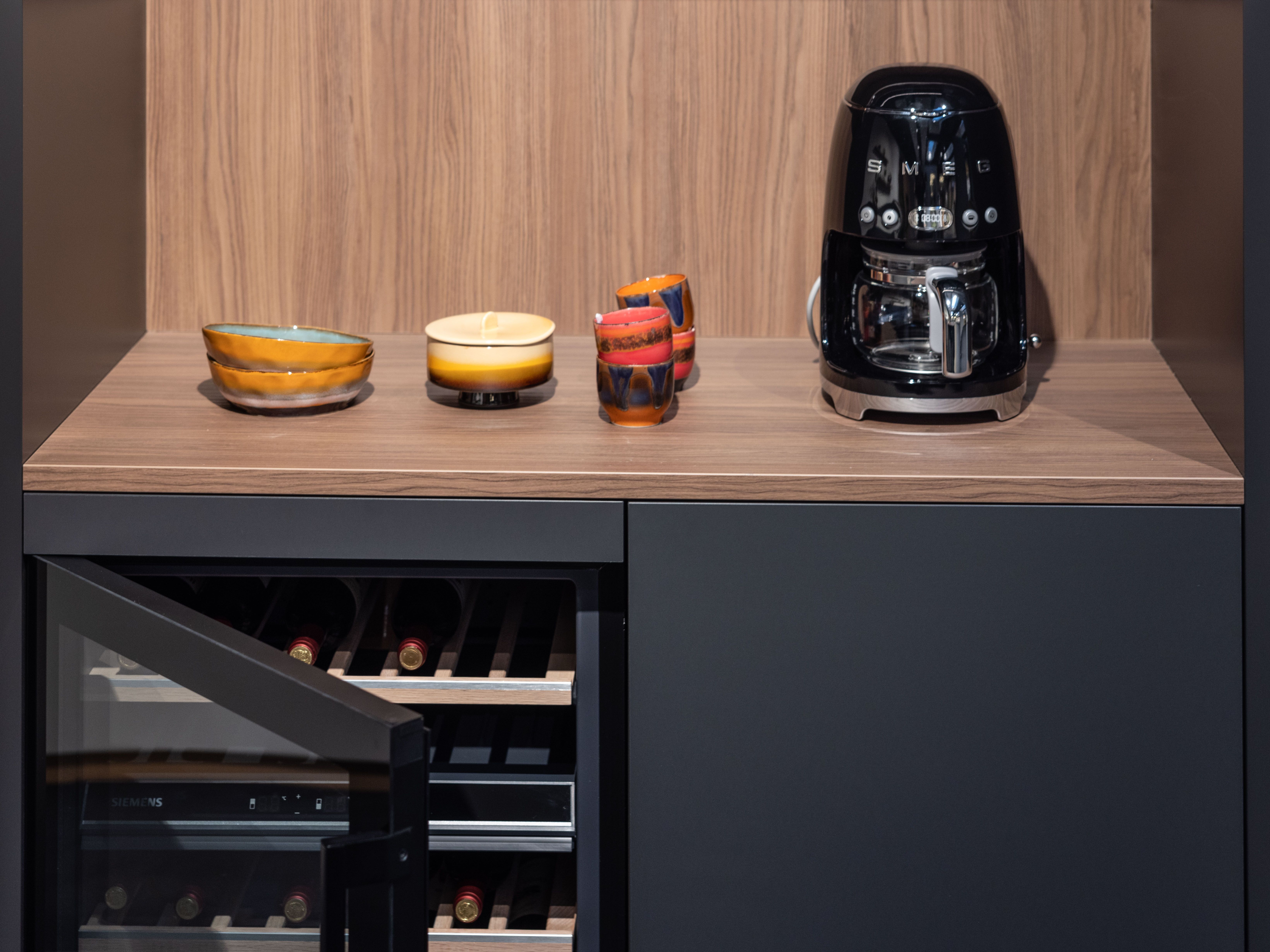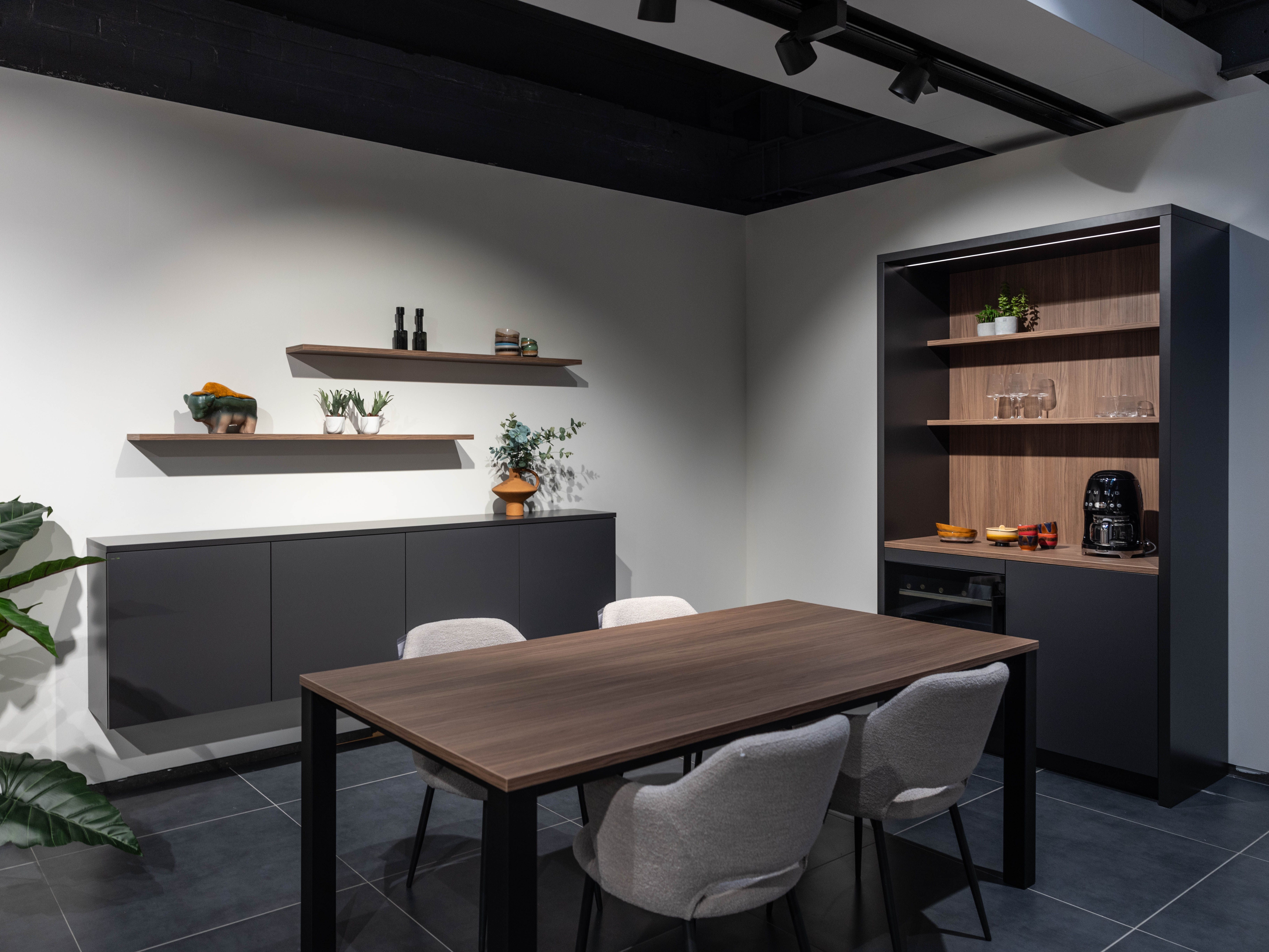 Maak het geheel af met een dressoir en barkast in dezelfde stijl. Tijdloos design en praktische luxe, met de vertrouwde kwaliteit van DEBA Keukens.