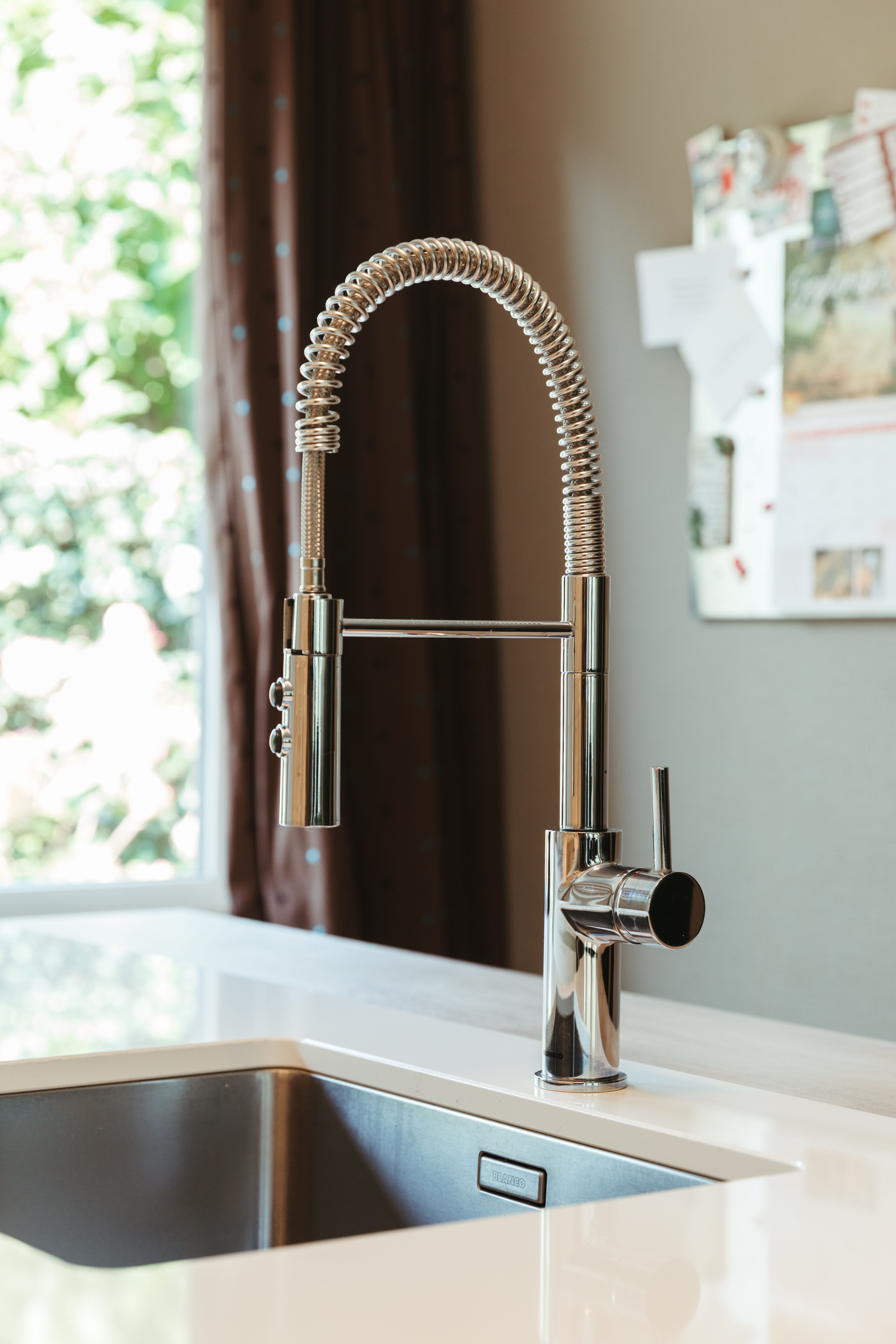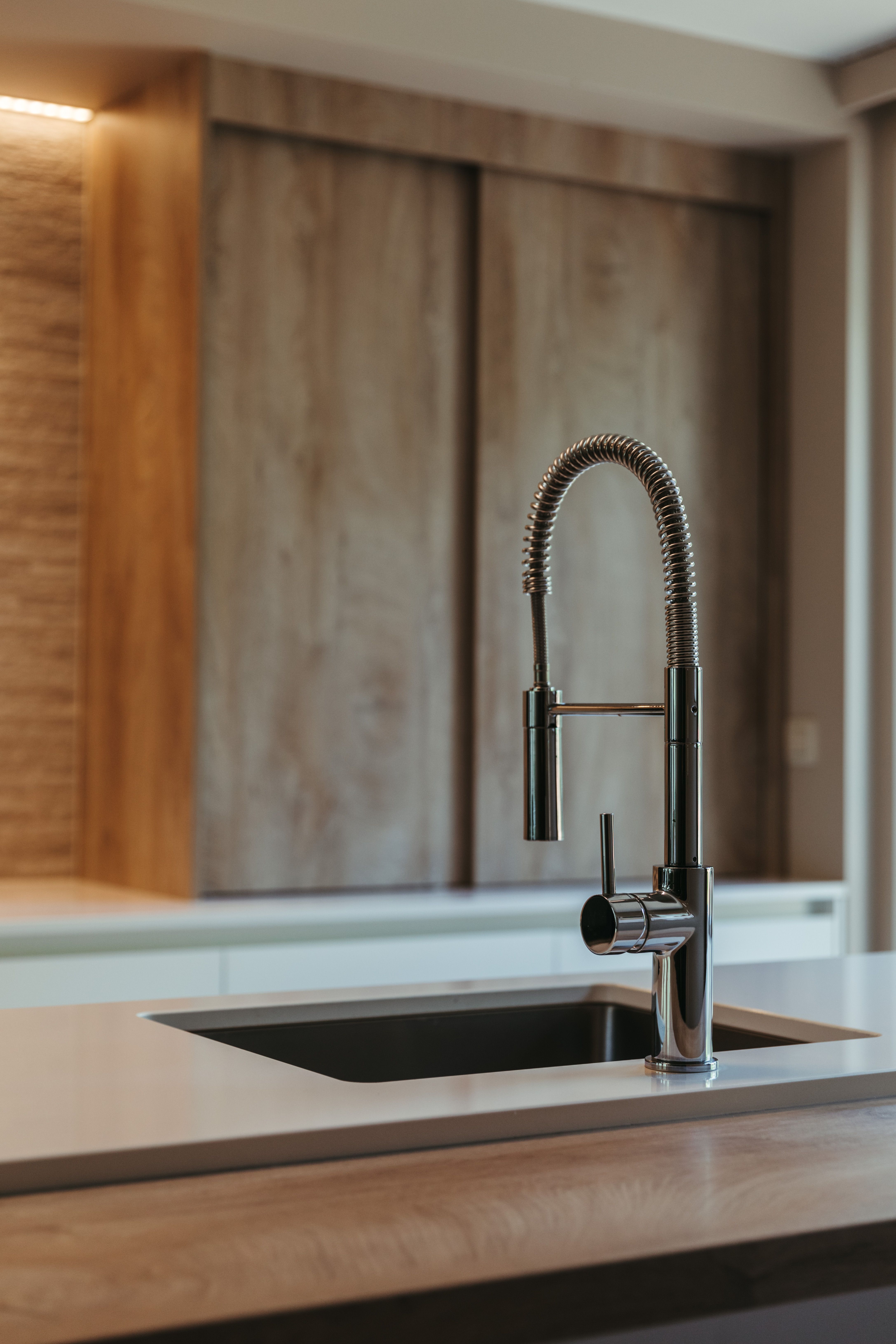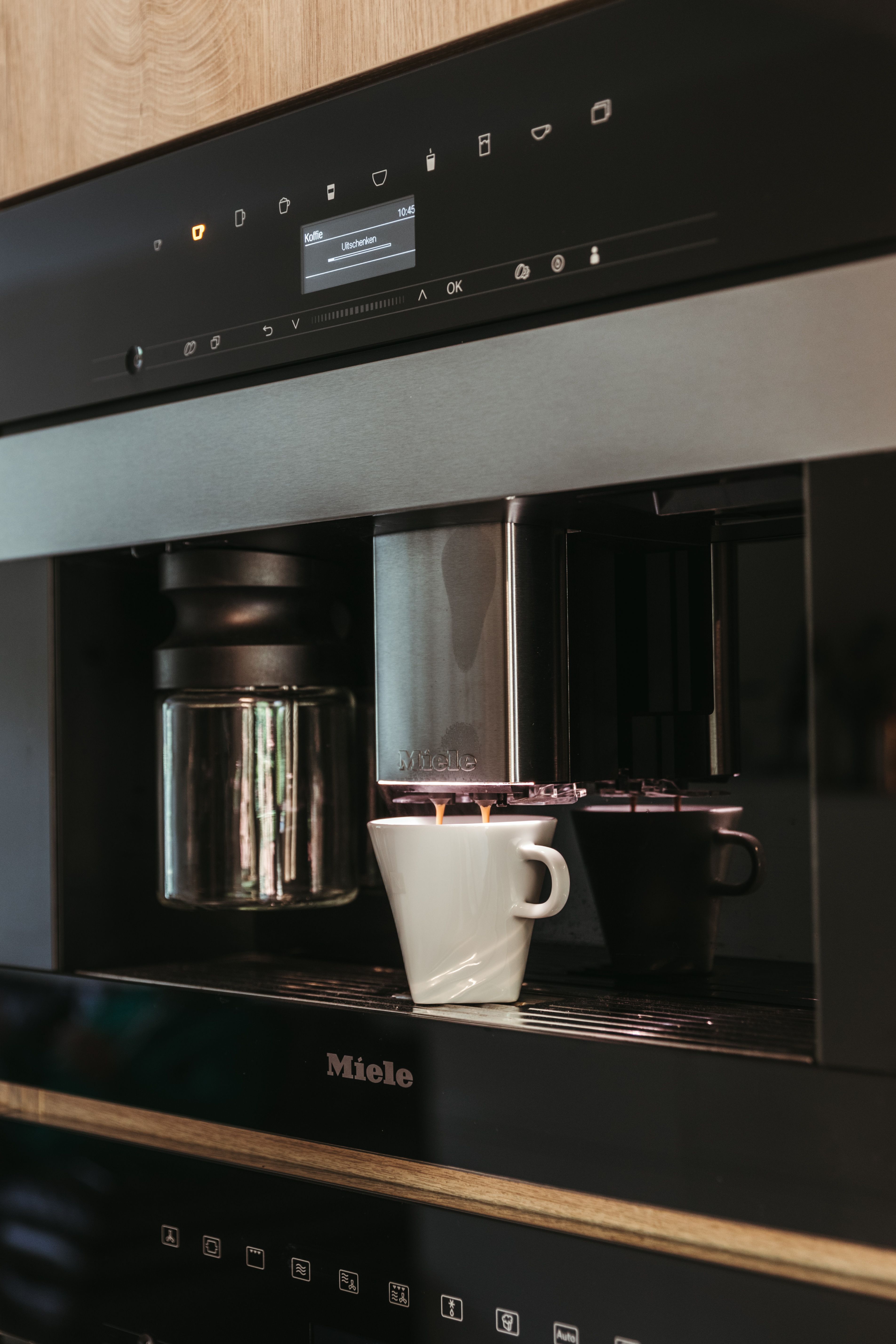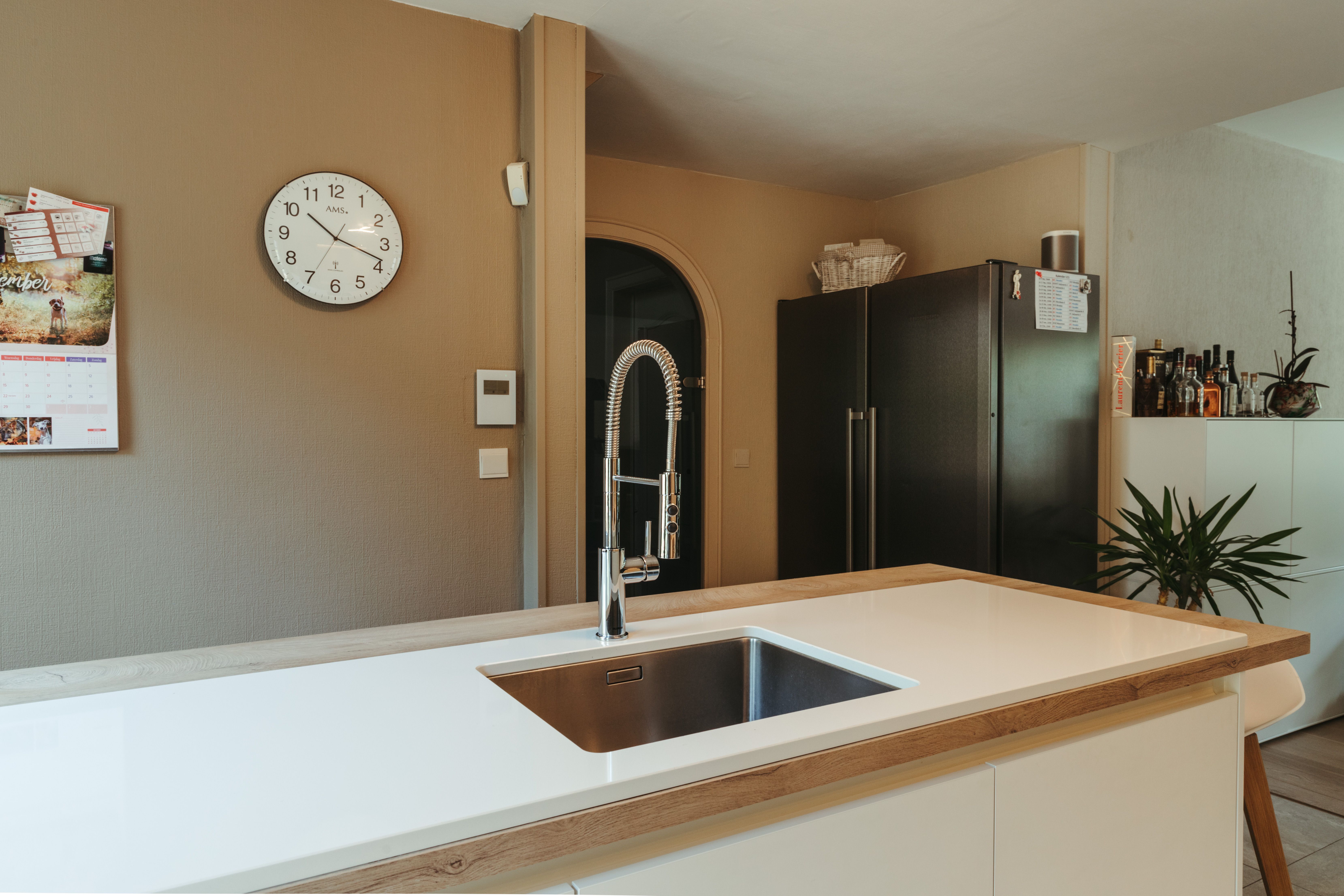 Samen met toestellen van Miele en een ingebouwde afzuigkap krijg je hier ook een bijzonder gebruiksvriendelijke keuken. De keukenkraan in chroom is een echte eyecatcher en straalt een semi-industrieel gevoel uit, zoals onze keukenexpert dat zelf benoemt.
