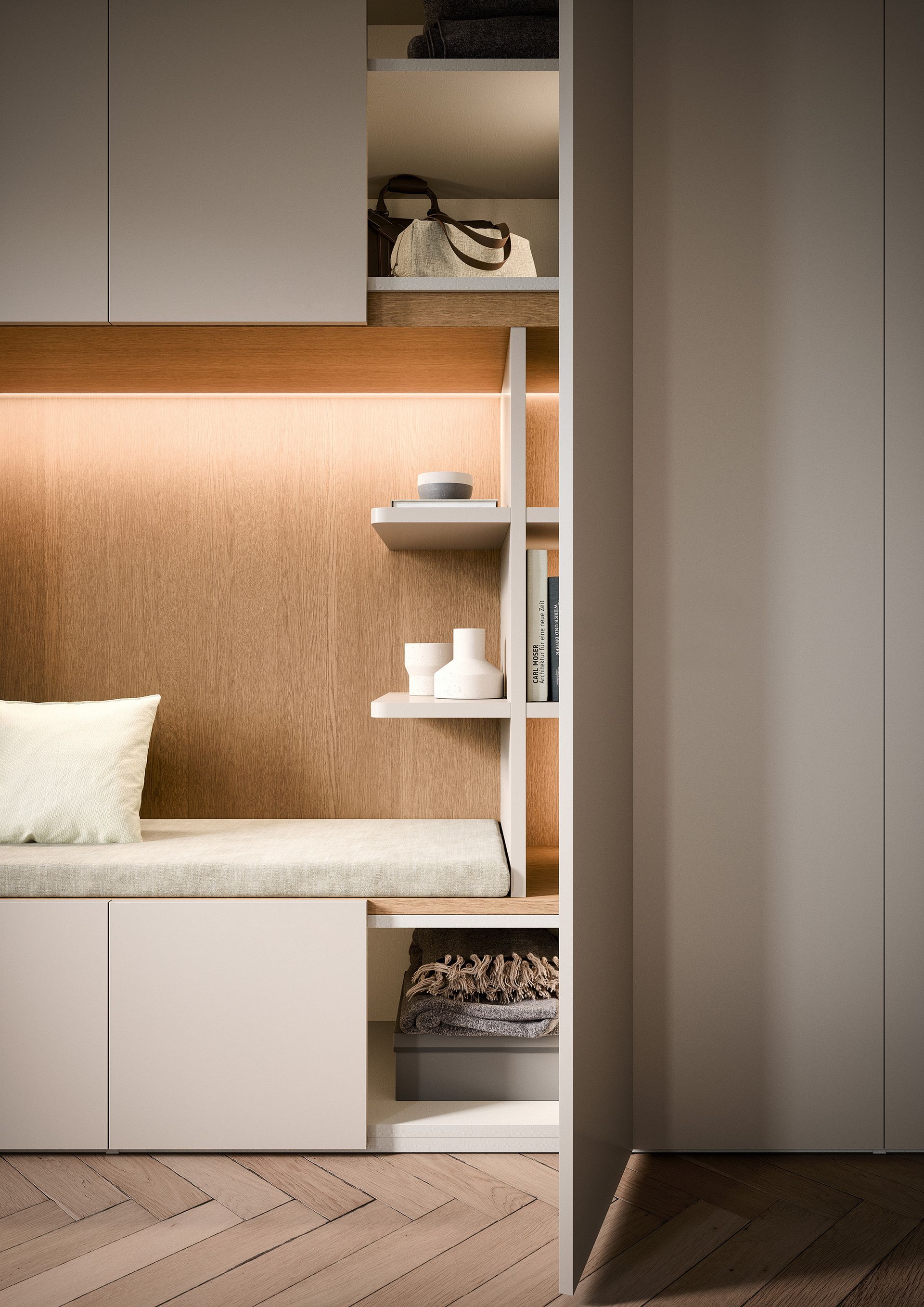 Bekijk onze realisaties en ontdek hoe slimme oplossingen en strakke afwerking samenkomen in vestiaires die écht werken voor jouw woning.