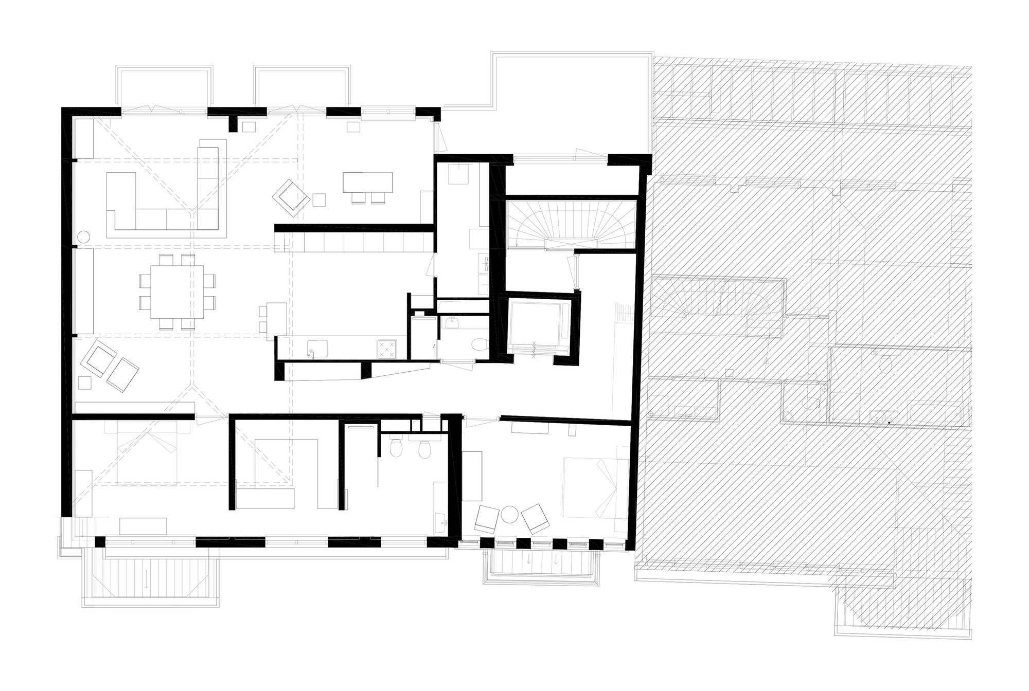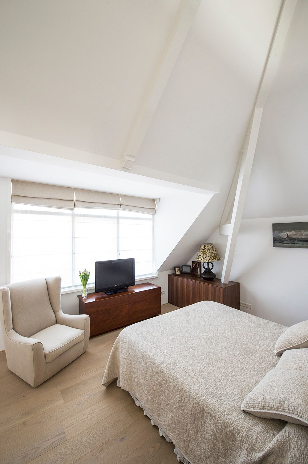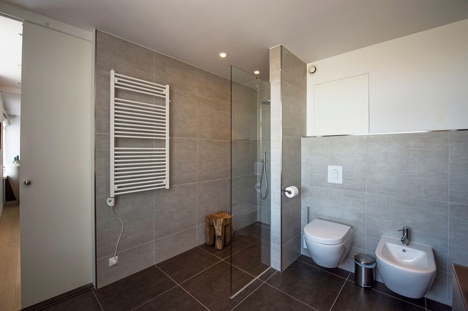 Samen met het Nederlandse PEÑA architectuur realiseerden we het maatwerk van dit project in Rotterdam. Het voormalige Kralings Museum werd getransformeerd tot een luxe appartementsgebouw. De afgeschuinde bibliotheek in de leefruimte zorgt voor optimaal plaatsgebruik tot onder het dak. In de slaapkamer was het een technische uitdaging om de steunbalk tussen het dak en de vloer naadloos in de dressoir in te werken. Aansluitend aan de slaapkamer bevindt zich de praktische inloopkast, waarvan het verlaagde element zicht visueel verlengt in de spiegel op de schuifdeur. Of hoe het ruimtegevoel hand in hand gaat met de praktische indeling. Vanuit de dressing heb je ook toegang tot de aanpalende badkamer. En ook de maatkasten in de gang zijn van de hand van onze maatwerkspecialisten.